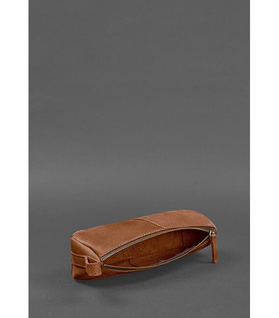 Світло-коричневий шкіряний пенал-несесер можна використовувати для зберігання будь-яких дрібних речей. Такий аксесуар можна використовувати як пенал, чохол для окулярів або органайзер для засобів гігієни та інших дрібниць.