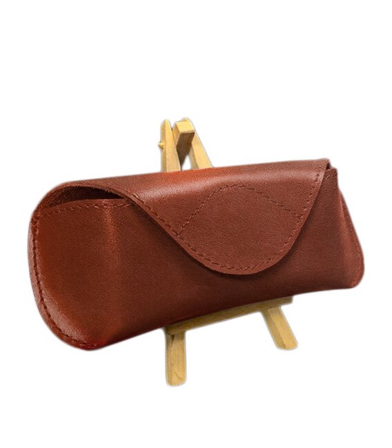 Шкіряний чохол для окулярів із клапаном на магніті Світло-коричневий Краст