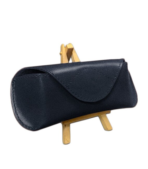 Шкіряний чохол для окулярів з клапаном на магніті Темно-синій Краст