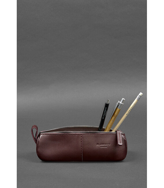 Бордовий шкіряний пенал-несесер призначений для зберігання і перенесення різних предметів: дорожніх речей, канцелярії, окулярів, предметів гігієни та іншого.