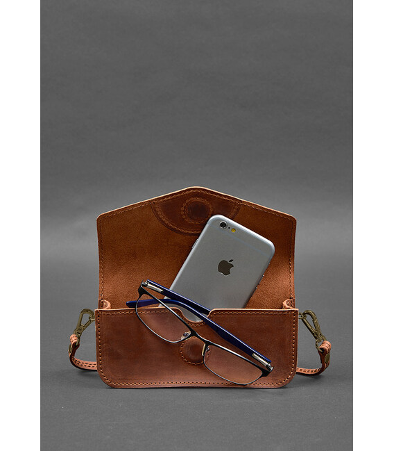 Детальніше Шкіряна сумка-футляр для окулярів (міні-сумка) світло-коричнева Crazy Horse
