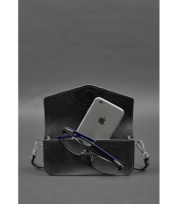 Детальніше Шкіряна сумка-футляр для окулярів (міні-сумка) чорний Crazy Horse