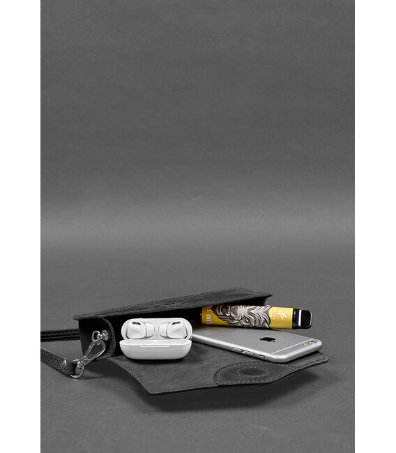 Шкіряна сумка-футляр для окулярів (міні-сумка) чорний Crazy Horse