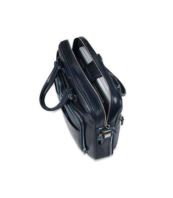 Портфель Piquadro BL SQUARE/N.Blue CA2849B2_BLU 2 Шкіряний дворучний портфель ідеальний для транспортування пристроїв, документів, папок і різних аксесуарів, що може знадобитися Вам для роботи.100% оригінал Piquadro в Chemodanoff Синій колір/N.Blue/CA2849B2/BLU 2 Розмір: 39x28,5x10, 5 см.Країна бренду – Італія Blue Square (B2) – це вишукана колекція з великою різноманітністю аксесуарів та оригінальним підходом дизайнерів.Матеріал B2 – анілінова теляча шкіра. Добірна сировина пройшла спеціалізовану обробку, яка зробила шкіру максимально стійкою до зношування та пошкоджень, що гарантує її довговічність. Блакитна окантовка з каучуку Blue Square B2 особливо популярна серед шанувальників Піквадро.Портфель закривається на двосторонню блискавку, що замикається.В основному відділенні знаходиться: протиударне відділення для ноутбука 14, відділення для IPADAIR-IPAD PRO 9.7/IPAD 11", відділення на блискавці, відділення на сітчастій блискавці, 3 еластичні накладні кишені, 2 еластичні тримачі для ручок і знімна ключниця.В основному відділенні також є 3 відділення для кредитних карток, 1 тримач для USB-накопичувачів та 1 кишеня.Фронтальна кишеня на блискавці 1: відділення на блискавці, 1 сітчаста кишеня та 2 еластичні відділення.Фронтальна кишеня на блискавці 2: сітчаста кишеня, еластична кишеня і 3 еластичні тримачі для ручок.З правого боку 1 відділення на блискавці, де знаходиться 1 тримач для пляшки або парасольки.Також з правого боку 1 кільце кріплення.Тильне відділення на блискавці.Функція кріплення на ручці валізи.Посилене дно.Кільце для ключів.Адресна бирка.Вміщує формат A4.Брендування Piquadro.Портфель Piquadro BL SQUARE / N.Blue CA2849B2_BLU2 – це модель з продуктивним та стильним дизайном. Доставка по Україні.Вибирайте якісну італійську шкіргалантерею Піквадро у магазині Chemodanoff!