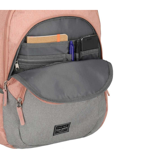Travelite BASICS [096308; Pink] - рюкзак на 2 відділення / з кишенею для ноутбука до 15,6". З двома відділеннями та додатковими периферійними кишенями у вас буде достатньо місця для міської та заміської активності. Збираєтеся на навчання або роботу, в рюкзаку достатньо місця для підручників, доповідей, робочих документів та портативної електроніки. Плануєте поїздку містом, катаєтесь на велосипеді по сільській місцевості або просто займаєтеся своїми повсякденними справами, в цьому рюкзаку є все, що вам потрібно.Характеристики TRAVELITE 096308 17✔ Дизайн з меланжевого поліестеру: Pink (рожевий з сірими вставками). ✔ Ергономічні наплічні ремені з м'яким наповнювачем.✔ Нагрудні ремінці для чіткої фіксації рюкзака під час активних рухів. ✔ Повітропроникна сітчаста спинка з м'якою підтримкою спини.✔ Поміщається формат А4.✔ За нашивку на передній панелі зручно кріпити ліхтарик або світловідбивач.✔ Функція кріплення на валізу (зручний для ручної поклажі).✔ Розмір та вага Висота, ширина, глибина: 45 х 31 х 16 см Об'єм: 22 л Вага:700 г • 2 відділення на двобігункових блискавках.• У задньому відділенні - м'яка кишеня на хлястику з липучкою для ноутбука до 15,6 дюймів.• Велика передня кишеня з органайзером для ручок, телефона, гаманця, зарядних пристроїв та ін.• Лицьова кишеня на блискавці для дрібниць. • 2 бічні кишені-сітки для води/парасольки.