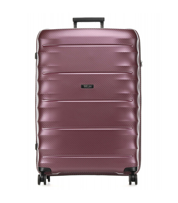 Валіза Titan HIGHLIGHT/Merlot L Велика Ti842404- 70 Велика валіза 842404 70 (об'ємом 112 л) від Titan з колекції Highlight на 4 здвоєних колесах, виготовлена з дуже гнучкого та стійкого до пошкоджень поліпропілену. Валіза важить лише 3,4 кг. Безпеку забезпечує сучасний кодовий замок із системою TSA.Особливості Highlight:o 4 подвійних гумових колеса на металевих підшипниках, що обертаються на 360 градусів o ручки для перенесення валізи та висувна каркасна ручка з легких матеріалів o кодовий замок із системою TSA на бічній стороні валізи o всередині валізу розділено на дві камери o основне відділення з ременями для зберігання багажу o верхнє відділення закрите відділенням на блискавці з додатковою кишенею на блискавціo дуже гнучкий матеріал, стійкий до пошкоджень та подряпин o рельєфний елегантний логотип бренду TITAN Велика валіза - "L"Розміри: 52x76x32 см.Вага: 3,4 кг Місткість: 112 л.TITAN Highlight – це валізи з дуже гнучкого та стійкого до пошкоджень поліпропілену. Колекція доступна у чотирьох кольорах: чорному, білому, хакі та антрациті. Всі валізи мають чотири цілі колеса і закриваються кодовим замком із системою TSA.TITAN заснована в 1983 році і є одним з провідних брендів, що виробляють функціональні та стильні якісні валізи. Компанія виготовляє дуже легкі валізи з жорсткого полікарбонату – колекції X2 Flash, Xenon Plus, Backstage та Moda, а також дуже естетичні, легкі м'які валізи. Додатково є колекції сумок та рюкзаків з місцем для ноутбука та сумок на коліщатках.TITAN - перший бренд з 2010 року, що виробляє валізи з твердого полікарбонату "Зроблено в Німеччині". Набутий досвід у виробництві валіз дозволив нам отримати безліч престижних нагород у Європі та в усьому світі. Вся продукція TITAN, як і раніше, проектується і розробляється в Німеччині.Оригінальні німецькі валізи Titan із доставкою по Україні. Топовий багаж у магазині Chemodanoff!