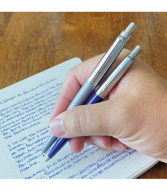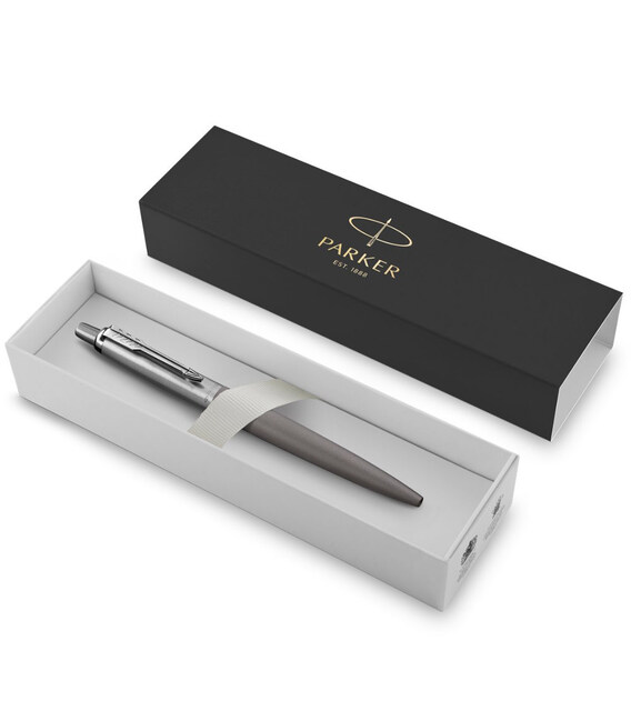 Parker JOTTER XL Alexandra Matt Grey CT BP (сірий матовий дизайн з хромуванням) - велика кулькова ручка з колекції культових інструментів JOTTER XL зі збільшеним на 7% розміром корпусу. Ідеальна модель для всіх, кому подобається простота ручок Джотер, але більшого розміру.Ця модель виконана в суцільнометалевому корпусі у сучасному двоколірному дизайні. Фірмовий кліп у формі стрілки та впізнаване звучання кліка кнопки.Ручка використовує стрижень QuinkFlow для плавного потоку чорнила та рівномірно насичених ліній. Ручка пише м'яко, чорнило не розмазується. Запасу чорнила вистачає приблизно для лінії 3,5 км, тому ручка ідеально підходить для частого та активного письма.Корпус - неіржавна сталь (полірований ковпачок + сірий матовий лак). Сріблясте блискуче оздоблення затискача - хромування.Класичний натискний механізм з кнопкою. У ручку вставлений стартовий кульковий стрижень.Ручка упакована у подарункову коробку Parker.Оригінальні ручки Parker у різноманітному асортименті оздоблень. На А ttribute.ua представлені всі колекції письмових інструментів Parker. Швидка доставка та вигідні ціни на справжню брендову продукцію.