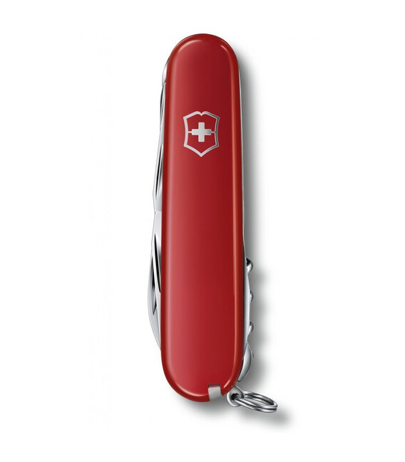 Швейцарський кишеньковий ніж Victorinox HUNTSMAN (1.3713) із класичними червоними накладками з глянцевого пластика з логотипом бренду. Багатофункціональна складана модель зі зручним розташуванням інструментів для виконання 15 функцій. Кишеньковий дизайн середнього розміру для любителів різноманітної активності на свіжому повітрі.Huntsman має два сталевих леза (велике і маленьке) з ультрагострим заводським заточуванням. Безумовною перевагою цієї моделі є також надгостра пилка для роботи по дереву та зручні ножиці із пружинним механізмом. Дві відкривачки (пляшкова та консервна) доповнені на кінці плоскими викрутками (3 та 6 мм). З іншого боку розташувалися штопор, багатоцільовий гачок і шило зі спеціальним жолобком для нитки та вушком для шиття. У торцях накладок - набір з пінцета і пластикової зубочистки, які легко виймаються.Усі металеві деталі виготовлено з якісної неіржавної сталі з високим рівнем антикорозійності та стійкості до різних механічних пошкоджень. За умови рекомендованого догляду, що включає регулярне чищення та змащування, інструмент служитиме вам вічно.• 15 функцій із 4-шаровим розташуванням• Розмір у складеному вигляді (довжина х ширина х товщина): 91 х 27 х 21 мм• Інструменти: висококласна неіржавна сталь• Червоні накладки з ударостійкого глянцевого пластика• Упаковка: фірмова коробка з інструкцією-сертифікатом• Довічна гарантія на заводський брак• Компанія-виробник: Victorinox AG, Швейцарія