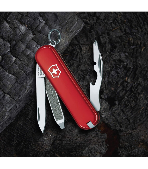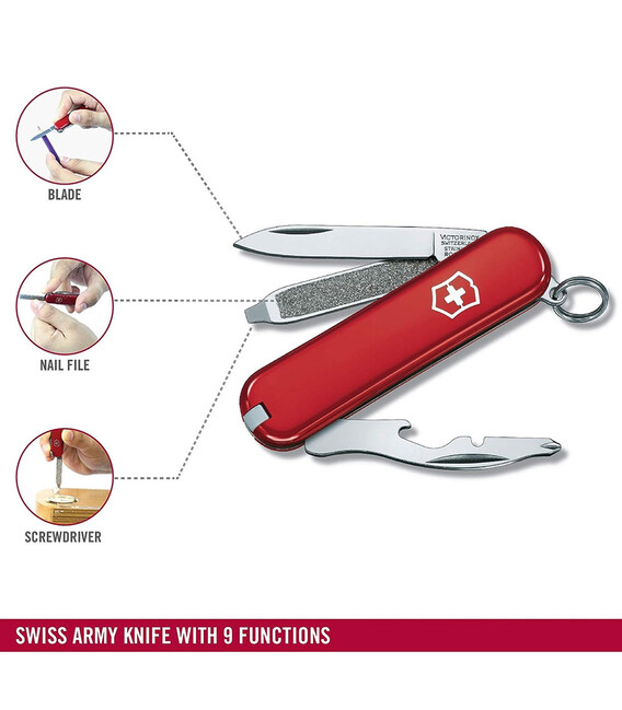 Victorinox RALLY (червоний) – маленький швейцарський ніж-брелок 58 мм на 9 функцій. Багатозадачний кишеньковий ніж із пилочкою та викруткою Phillips, який сподобається як дорослим, так і дітям. Навести лад з манікюром, заточити олівець або здійснити невеликий ремонт, з такою роботящою крихіткою, вам все до снаги. Всі інструменти гарантують бездоганну, довговічну роботу. Легендарна якість сталі Victorinox та професійна технологія обробки зроблять цей ніж вічним помічником на кожен день.Інформація про ніж Victorinox RALLY [0.6163]✔ Виготовлений із висококласної неіржавної сталі.✔ Червоні накладки-руків’я з міцного пластика з логотипом бренду.✔ 9 функцій.✔ Легка вага: 22 г✔ Колекція маленьких складаних ножів Victorinox (довжина x ширина x товщина), мм: 58 x 19 x 9✔ Виготовлено у Швейцарії.1. маленьке сталеве лезо2. відкривачка3. - хрестова викрутка 0/1, магнітна4. - паз для зачистки дротів5. пилочка для нігтів6. - плоска викрутка 2,5 мм7. пінцет у передній накладці8. зубочистка у задній накладці9. кільце для кріплення