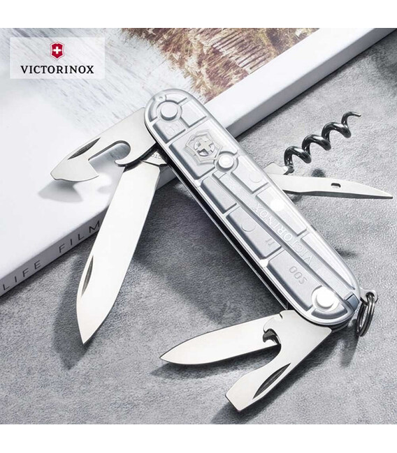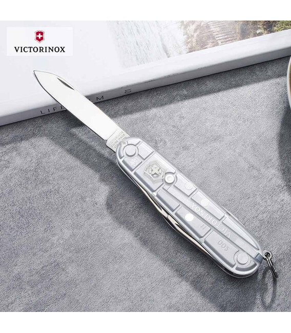 Середній швейцарський армійський ніж SPARTAN 91мм / 2 шари / 12 функцій / сріблясті напівпрозорі накладки / штопор (блістер) Victorinox 1.3603.T7B1 Швейцарія