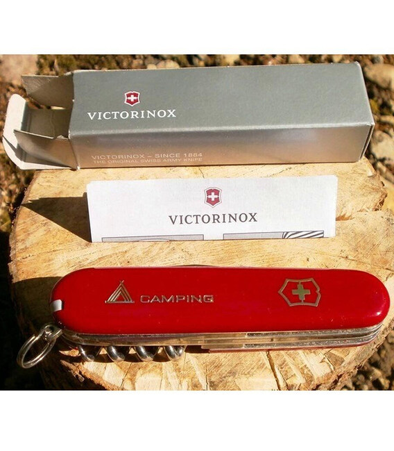 Офіцерський кишеньковий ніж CAMPER 91мм / 3 шари / 13 функцій / червоні накладки з написом "Camping" / з пилкою і штопором Victorinox 1.3613.71 Швейцарія