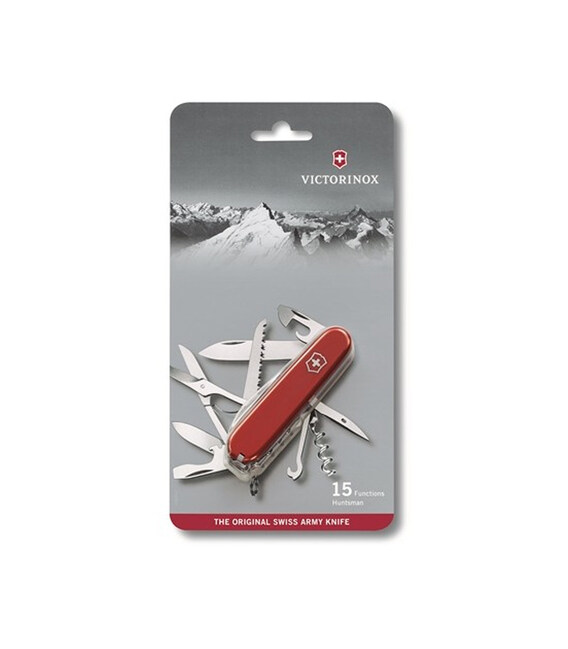 Victorinox HUNTSMAN (у блістері) - швейцарський кишеньковий ніж 91 мм (середній розмір) з 15 функціями і фірмовими червоними накладками з логотипом компанії. Ідеально підходить для пиляння дерева або різання канатів під час сходжень, туристичних походів і кемпінгів. Завдяки двом гострим клинкам, пилці, ножицям і відкривачкам впорається з найрізноманітнішими польовими завданнями.Колекція: Huntsman Номер моделі 1.3713.B1 Червоні накладки з глянцевого пластика (целідор) Всі інструменти і внутрішня частина конструкції з високоякісної неіржавної сталі Довжина - 91 мм Товщина - 21 мм Вага - 97 г 15 функцій. Постачається в оригінальному блістері. Бренд: Victorinox (Вікторінокс) Країна виробництва: Швейцарія Висока якість матеріалів і збірки робить кишеньковий ніж Вікторінокс довговічним, точним і неймовірно продуктивним. Різальні крайки довго залишаються максимально гострими. Фірмова неіржавна сталь відрізняється високими показниками стійкості до корозії і деформації.1. великий клинок 2. маленький клинок 3. пилка по дереву 4. ножиці 5. відкривачка 6. - викрутка плоска 6 мм 7. - пристосування для зняття ізоляції з дроту 8. консервний ніж 9. - викрутка плоска 3 мм 10. штопор 11. шило/дирокол 12. універсальний гачок 13. пінцет 14. зубочистка 15. кільце для кріплення На ніж Victorinox Huntsman 1.3713.B1, як і на будь-який складаний ніж Вікторінокс, поширюється довічна гарантія на якість матеріалів і заводське виробництво. Швидка доставка - 100% Оригінальні ножі Victorinox в інтернет-магазині chemodanoff.com.ua - широка географія доставки по всій Україні.