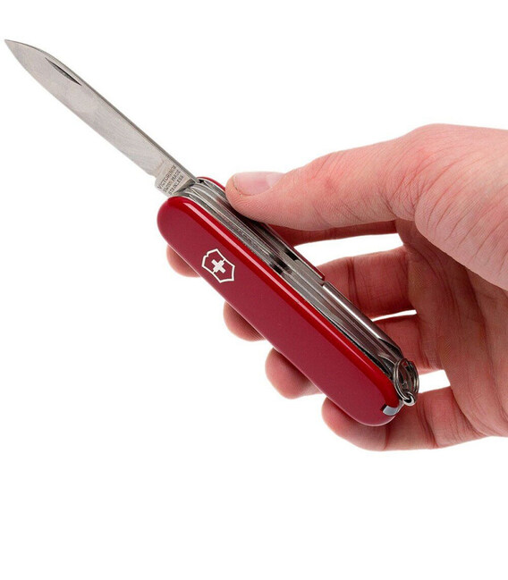 Victorinox FIELDMASTER (червоний) – складаний кишеньковий ніж 91 мм на 15 функцій зі Швейцарії. Універсальна комплектація, яка ідеально підходить для повсякденних пригод чи робіт у будинку чи саду, однаково добре працює як на відкритому просторі, так і в домашніх умовах. Всі інструменти гарантують бездоганну, довговічну роботу, не люфлять. Ножовий замок Slip-joint – це перевірена часом конструкція, яка фіксує лезо в положенні до руків’я та надійно захищає від закидання під час роботи.Інформація про ніж Victorinox FIELDMASTER [1.4713]✔ Виготовлений із висококласної неіржавної сталі.✔ Червоні накладки-руків’я з міцного пластика з логотипом бренду.✔ 15 функцій.✔ Комфортна вага: 100 г✔ Середній розмір ножа Victorinox (довжина х ширина х товщина), мм: 91 х 26 х 20✔ На ніж поширюється довічна гарантія якості.✔ Картонна коробочка з оригінальним сертифікатом.✔ Виготовлено у Швейцарії.1. велике сталеве лезо2 лезо меншого розміру3. пилка для розпилу дерева4. ножиці з пружинним механізмом5. відкривачка6. - викрутка плоска 6 мм7. - паз для усунення ізоляції з проводки8. відкривачка для консервів9. - викрутка плоска 3 мм10. хрестова викрутка 1/211. шило (дірокол)12. багатозадачний гачок13. пінцет у передній накладці14. зубочистка у задній накладці15. кільце для кріплення