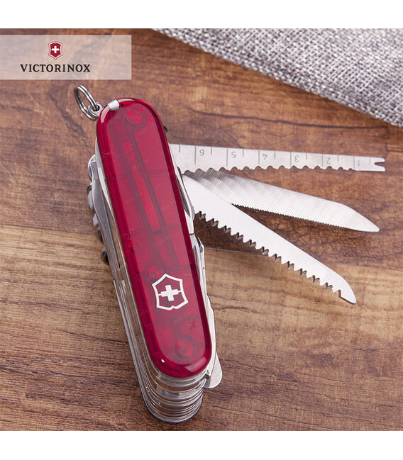 Швейцарський армійський ніж SWISS CHAMP XLT 91мм / 8 шарів / 49 функцій / червоні напівпрозорі накладки / хрестова викрутка / пилка по дереву / пилка по металу / плоскогубці / лупа / ножиці