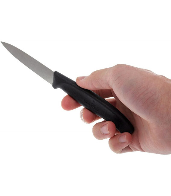 Victorinox Swiss Classic Paring [6.7603] - маленький кухонний ніж з чорною ручкою.Довжина леза 8 см і гладка заточка. Призначений для чищення овочів, фруктів, а також іншої роботи, де важлива точність і мобільність кухонного ножа. Наприклад, зручно позбавити болгарський перець від насіння або нарізати часник, зелень. Неймовірно гострий і довговічний помічник на вашій кухні.Модель представлена у популярній лінійці Swiss Classic (Свісс Класік) з найбільшим вибором кольорових ручок, варіантів довжини і заточування леза. Кухонні ножі Victorinox (Вікторінокс) - висока якість виготовлення і бездоганна продуктивність. Ергономічна ручка зі стабільним хватом і професійне заводське заточування для легкої і продуктивної експлуатації.- Для чищення овочів і фруктів; дрібної роботи.- Лезо 8 см.- Різальна крайка: гладка (Plain).- Лезо зі штампованої неіржавної сталі високої якості.- Нековзка ручка з поліпропілену.- Дозволене миття в посудомийній машині.- Постачається із захисною плівкою на лезо.Висококласна неіржавна сталь - це фірмовий почерк швейцарської ножової компанії Victorinox, яка прославилася виробництвом легендарних складаних армійських ножів SAK. Поспішайте купити кухонний ніж Victorinox 6.7603, поки він є в наявності. Брендовий магазин chemodanoff.com.ua - 100% оригінал від Вікторінокс.