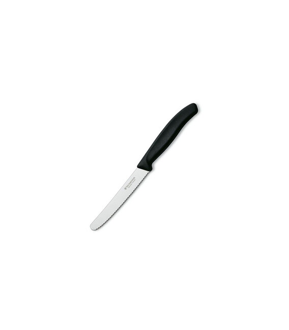 Кухонний ніж Swiss Classic Tomato and Table з лезом 11 см (серейтор; закруглений кінчик) і чорною ручкою Victorinox Швейцарія