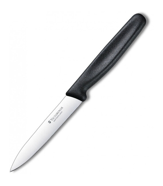 Victorinox Standard Paring [5.0703] - легкий і маневрений кухонний ніж для овочів. Ультрагостре лезо завдовжки 10 см із загостреною формою. Дизайн з чорним руків'ям.Завдяки середнього розміру леза цей ніж стане універсальним помічником під час виконання багатьох кулінарних завдань.Колекція Standard - висококласна ножова продукція від швейцарської компанії Victorinox. Ергономічна ручка зі стабільним хватом і професійне заводське заточування для легкої і продуктивної експлуатації. Лезо чудово ріже і довго зберігає гостроту. Акуратна і легка робота без втоми завдяки легкій вазі і продуманому дизайну.Кухонні ножі Victorinox (Вікторінокс) - висока якість виготовлення і бездоганна продуктивність.- Для чищення овочів і фруктів.- Різальна крайка: гладка (Plain).- Лезо 10 см.- Лезо із неіржавної сталі високої якості.- Нековзка ручка з поліпропілену.- Можна мити в посудомийній машині.Висококласна неіржавна сталь - це фірмовий стиль швейцарської ножової компанії Victorinox, яка ще з 1884 року славиться виробництвом легендарних складаних армійських ножів SAK.Гарантія якості на весь термін експлуатації.Купити кухонний ніж Victorinox 5.0703 в інтернет-магазині А ttribute - 100% оригінал від Вікторінокс (Швейцарія) і швидка доставка.
