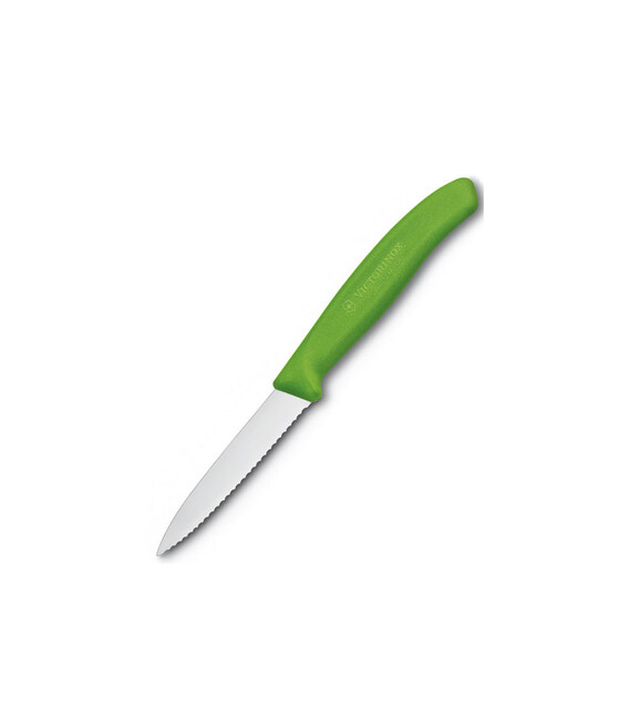 Кухонний ніж для чищення овочів Swiss Classic Paring з лезом 8 см (серейтор) і зеленою ручкою Victorinox Швейцарія