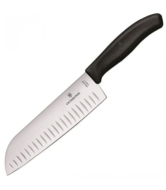 Victorinox SWISS CLASSIC Santoku [6.8523.17G] - кухонний ніж-сантоку з рифленим лезом і чорним пластиковим руків'ям.Довжина леза 17 см. Гладка заточка. Рифлена бокова поверхня.Ніж-сантоку, або японський клинок, чудово підходить для щоденної роботи на кухні і в умілих руках стає справжнім універсалом. Прекрасно впорається з більшістю кулінарних процесів, а завдяки рифленому лезу мінімізує прилипання навіть жирних або маслянистих продуктів до ножа.Swiss Classic (Свісс Класік) - це популярна серія кухонного інвентарю з найбільшим вибором кольорових ручок, варіантів довжини і заточування леза. Кухонні ножі Victorinox (Вікторінокс) - висока якість виготовлення і бездоганна продуктивність. Ергономічна ручка зі стабільним хватом і професійне заводське заточування для легкої і продуктивної експлуатації. Лезо чудово ріже і довго зберігає гостроту.- Рифлене лезо 17 см.- Різальна крайка: гладка (Plain).- Лезо із неіржавної сталі високої якості.- Нековзка ручка з термоеластопласту (ТПЕ).- Дозволено мити в посудомийній машині.- Упаковка - подарункова коробка.Купити кухонний ніж Victorinox 6.8523.17G на А ttribute.ua - 100% оригінал від Вікторінокс (Швейцарія) і швидка доставка по Україні.