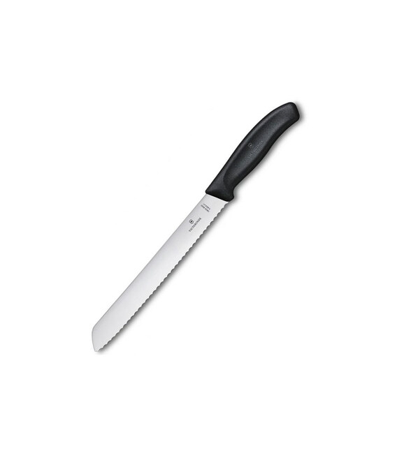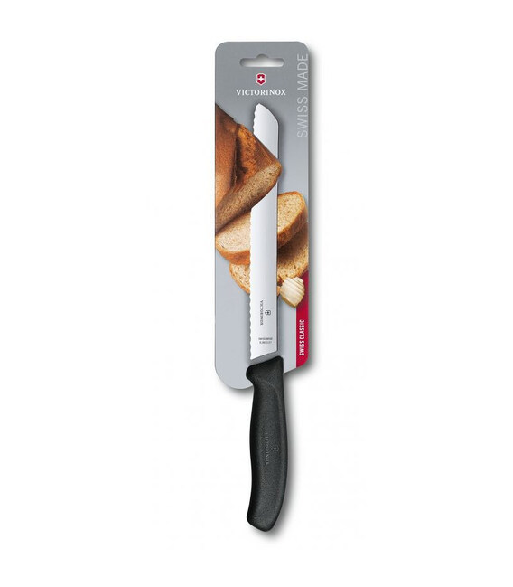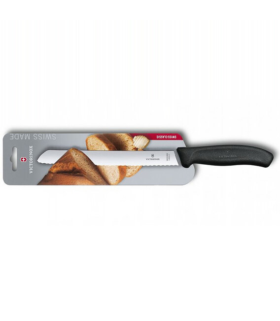 Victorinox SWISS CLASSIC Bread [6.8633.21B] - ніж для хліба від швейцарської компанії Victorinox. Ергономічне чорне руків'я.Довжина леза 21 см - серейторна заточка різальної крайки.Акуратне і легке нарізання хлібобулочних виробів без зайвих крихт. Ідеально рівні скибочки хліба або пирога на вашому столі.Swiss Classic (Свісс Класік) - це популярна серія кухонного інвентарю з найбільшим вибором кольорових ручок, варіантів довжини і заточування леза. Кухонні ножі Victorinox (Вікторінокс) - висока якість виготовлення і бездоганна продуктивність. Ергономічна ручка зі стабільним хватом і професійне заводське заточування для легкої і продуктивної експлуатації. Лезо чудово ріже і довго зберігає гостроту.- Призначення: для хліба.- Лезо 21 см.- Різальна крайка: хвиляста (серейтор).- Лезо із неіржавної сталі високої якості.- Нековзка і термостійка ручка з термоеластопласту (ТПЕ).- Дозволено мити в посудомийній машині і стерилізувати.- Упаковка - кольоровий блістер.Висококласна неіржавна сталь - це фірмовий почерк швейцарської ножової компанії Victorinox, яка прославилася виробництвом легендарних складаних армійських ножів SAK.Гарантія якості на весь термін експлуатації.Поспішайте купити кухонний ніж Victorinox 6.8633.21B в онлайн-магазині брендової продукції А ttribute - 100% оригінал від Вікторінокс (Швейцарія). Швидка доставка.
