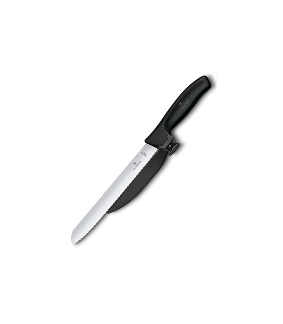 Ніж для нарізання з направляючою Swiss Classic DUX з лезом 21 см (серейтор) і чорною ручкою Victorinox 6.8663.21 Швейцарія