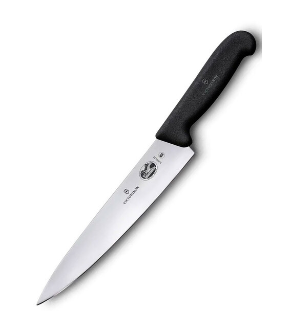 FIBROX Carving [5.2003.22] - великий обробний ніж від швейцарської компанії Victorinox. Ергономічне чорне руків'я.Довжина леза 22 см - гладка заточка різальної крайки.Професійний ніж з широким лезом, який підійде як для аматорів, так і працівників ресторанних кухонь, заготівельних підприємств. Неймовірно гострий і довговічний помічник.Fibrox (Фіброкс) - це професійна колекція кухонного інвентарю, розроблена з урахуванням системи кольорового кодування для безпечної роботи з різними групами продуктів (руків'я різних кольорів). Підвищена зносостійкість руків'я. Розроблено спеціально для великих робочих навантажень. Міжнародна сертифікація NSF.Кухонні ножі Victorinox (Вікторінокс) - висока якість виготовлення і бездоганна продуктивність. Ергономічна ручка зі стабільним хватом і професійне заводське заточування для легкої і продуктивної експлуатації. Лезо чудово ріже і довго зберігає гостроту.- Для обробки.- Лезо 22 см.- Різальна крайка: гладка (Plain).- Лезо зі штампованої неіржавної сталі високої якості.- Нековзка і термостійка ручка з термоеластопласту (ТПЕ).- Дозволено мити в посудомийній машині і стерилізувати.Висококласна неіржавна сталь - це фірмовий почерк швейцарської ножової компанії Victorinox, яка прославилася виробництвом легендарних складаних армійських ножів SAK.Гарантія якості на весь термін експлуатації.Поспішайте купити кухонний ніж Victorinox 5.2003.22, поки він є в наявності. Брендовий магазин chemodanoff.com.ua - 100% оригінал від Вікторінокс (Швейцарія).