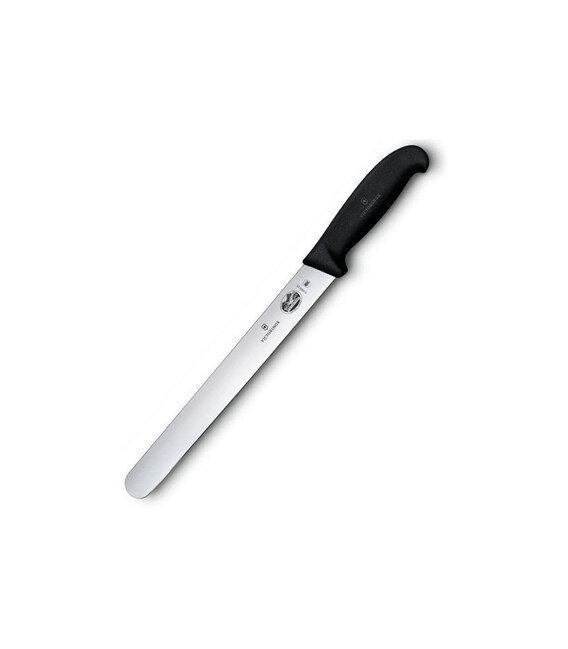 FIBROX Slicing [5.4203.25] - кухонний ніж для нарізання від швейцарської компанії Victorinox.Довжина леза 25 см. Гладка заточка різальної крайки. Ергономічне чорне руків'я.Професійний слайсерний ніж, за допомогою якого ви зможете нарізати на тонкі скибочки будь-які ковбасні вироби, шинку, сир або рибу. Завдяки закругленому кінчику зручний і для використання у ролі кондитерського ножа, наприклад, для нанесення крему або глазурі.Fibrox (Фіброкс) - це професійна колекція кухонного інвентарю. Підвищена зносостійкість руків'я. Розроблено спеціально для великих робочих навантажень. Міжнародна сертифікація NSF.Кухонні ножі Victorinox (Вікторінокс) - висока якість виготовлення і бездоганна продуктивність. Ергономічна ручка зі стабільним хватом і професійне заводське заточування для легкої і продуктивної експлуатації. Лезо чудово ріже і довго зберігає гостроту.- Призначення: слайсерний (для нарізання).- Довге лезо 25 см.- Різальна крайка: гладка (Plain).- Лезо із неіржавної сталі високої якості.- Нековзка і термостійка ручка з термоеластопласту (ТПЕ).- Можна мити в посудомийній машині і стерилізувати.Висококласна неіржавна сталь - це фірмовий почерк швейцарської ножової компанії Victorinox, яка прославилася виробництвом легендарних складаних армійських ножів SAK.Гарантія якості на весь термін експлуатації.Поспішайте купити кухонний ніж Victorinox 5.4203.25, поки він є в наявності. Брендовий магазин chemodanoff.com.ua - 100% оригінал від Вікторінокс (Швейцарія).