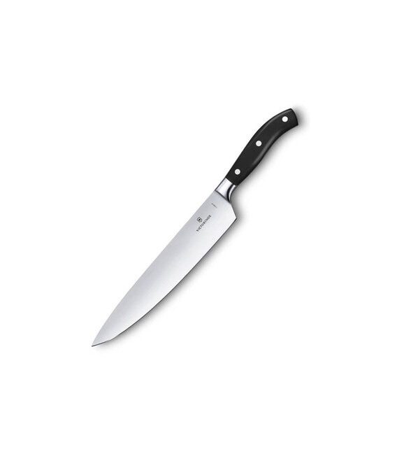 Кований ніж шеф-кухаря Grand Maitre Сhef's з лезом 25 см (гладке) і чорною ручкою (подарункова упаковка) Victorinox 7.7403.25G Швейцарія
