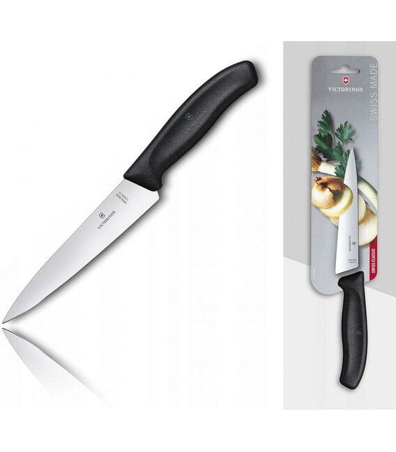 Victorinox SWISS CLASSIC Kitchen [6.8003.15B] - швейцарський кухонний ніж, універсальний для безлічі кухарських робіт.Дизайн з чорною ручкою. Довжина леза 15 см - гладка заточка.Дуже добре підходить для щоденної роботи на кухні. Неймовірно гострий і довговічний помічник.Swiss Classic (Свісс Класік) - це популярна серія кухонного інвентарю з найбільшим вибором кольорових ручок, варіантів довжини і заточування леза. Кухонні ножі Victorinox (Вікторінокс) - висока якість виготовлення і бездоганна продуктивність. Ергономічна ручка зі стабільним хватом і професійне заводське заточування для легкої і продуктивної експлуатації. Лезо чудово ріже і довго зберігає гостроту.- Лезо 15 см.- Різальна крайка: гладка (Plain).- Лезо із неіржавної сталі високої якості.- Нековзка ергономічна ручка з термоеластопласту (ТПЕ).- Дозволено мити в посудомийній машині.- Упаковка - кольоровий блістер.Висококласна неіржавна сталь - це фірмова особливість швейцарської ножової компанії Victorinox, яка з 1884 року славиться виробництвом легендарних складаних армійських ножів SAK. Поспішайте купити кухонний ніж Victorinox 6.8003.15B. Брендовий магазин chemodanoff.com.ua - 100% оригінал від Вікторінокс (Швейцарія).
