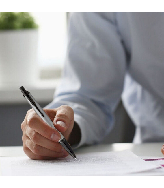 Кулькова ручка Parker IM ACHROMATIC MATT GREY BP. Класичний стиль від Паркер у новому функціональному дизайні 2020 року. Отримайте незабутнє перше враження завдяки елегантному сірому дизайну з чорними акцентами.Металевий корпус ручки IM Achromatic Matt Grey PVD виготовлений з латуні. Приглушений матовий сірий колір стильно контрастує із затискачем у вигляді стрілки і окантовкою, покритими чорним PVD, який забезпечує неперевершену стійкість до зношування і корозії. Унікальність цієї моделі ще і в тому, що майстри Паркер вперше застосували технологію PVD-оздоблення до ручок з лінійки IM.Оригінальна кулькова ручка Паркер з натискним типом механізму (кнопка). Висока якість письма з безперебійною подачею чорнила завдяки технології Quinkflow®. Чорнило швидко сохне на папері, забезпечуючи чистоту і красу ліній. Кулькові ручки Паркер надзвичайно прості у використанні і обслуговуванні.У комплекті з оригінальним стрижнем Parker QuinkFlow (вже вставлений в ручку). Товщина письмового вузла: середня (М = 1 мм). Номер за каталогом: 2127752 Гарантія протягом двох років з моменту покупки. Подарункова упаковка Parker.До всіх кулькових ручок Parker у нашому магазині ви можете додатково купити стрижні з тонким або середнім вузлом письма, а також гелеві GEL стрижні різних кольорів.