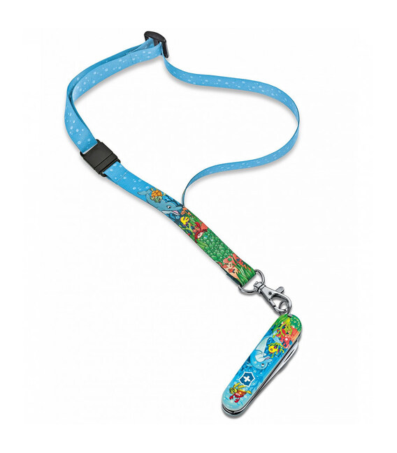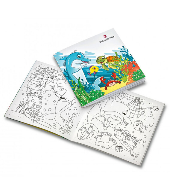 Дитячий кишеньковий ніж Animal Edition з розмальовкою MY FIRST Children Set Dolphin 84мм / 2 шари / 9 функцій / кольорові накладки з дельфіном / пилка + шнурок на шию + книжка-розмальовка Victorinox 0.2373.E1 Швейцарія