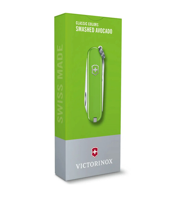 Victorinox CLASSIC SD Colors (Smashed Avocado - колір авокадо) - маленький і легкий складаний ніж 58 мм з 7 функціями з яскравої колекції Colors 2021 року. Лінійка Classic SD представлена моделями у форматі невеликого брелока. Популярні однотонні дизайни швейцарського кишенькового ножа з набором корисних щодня функцій. Колекція: Classic SD Colors Номер моделі 0.6223.43G Салатові глянцеві накладки з органічного пластика (целідор) Всі інструменти і внутрішня частина конструкції з високоякісної неіржавної сталі Довжина - 58 мм Товщина - 9 мм Вага - 21 г 7 функцій. Постачається у подарунковій коробці, створеній спеціально для колекції Colors. Бренд: Victorinox (Вікторінокс) Країна виробництва: Швейцарія 30 приголомшливих кольорів для Classic SD Colors, виконані як з пластиковими накладками, так і культовими рифленими накладками з анодованого алюмінію. Ножі поєднують 7 зручних функцій в стильних накладках, що робить їх функціональними і привабливими. 1. маленький клинок 2. ножиці 3. пилочка для нігтів 4. - викрутка плоска 2.5 мм 5. зубочистка 6. пінцет 7. кільце для підвішування до брелока або ключів На ніж Victorinox Classic SD Colors 0.6223.43G, як і на будь-який складаний ніж Вікторінокс, поширюється довічна гарантія на якість матеріалів і заводське виробництво. Швидка доставка - Оригінальні ножі Victorinox - широка географія доставки по всій Україні.