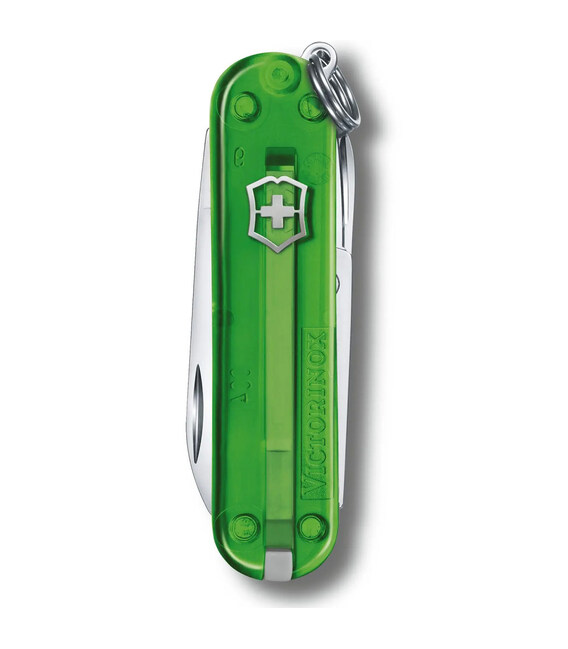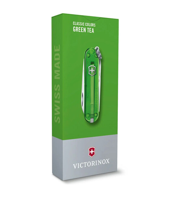 Маленький кишеньковий ніж-брелок CLASSIC SD Colors Green Tea 58мм / 2 шари / 7 функцій / зелені напівпрозорі накладки / ножиці Victorinox 0.6223.T41G