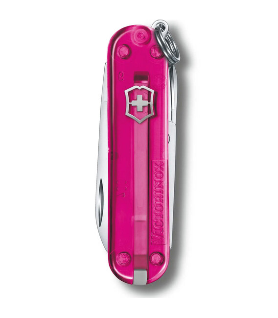 Маленький кишеньковий ніж-брелок CLASSIC SD Colors Cupcake Dream 58мм / 2 шари / 7 функцій / рожеві напівпрозорі накладки / ножиці Victorinox 0.6223.T5G