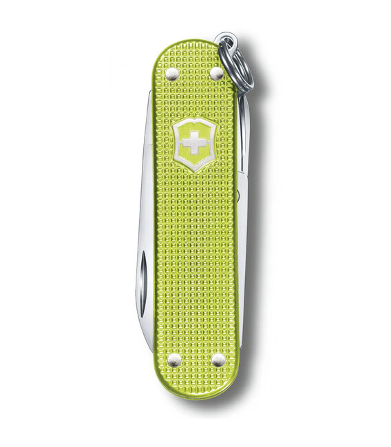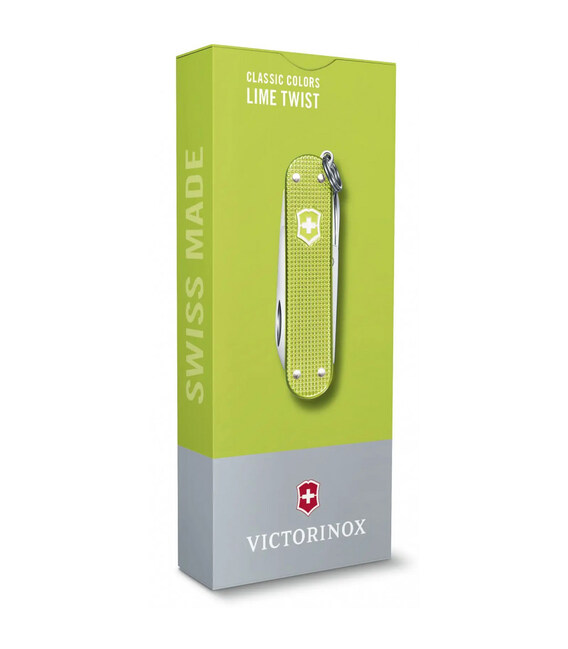 Victorinox CLASSIC SD Alox Colors (Lime Twist - лаймовий колір) - маленький і легкий складаний ніж 58 мм з 5 функціями і культовими накладками Alox. Модель з яскравої колекції Colors Classic SD 2021 року. Лінійка представлена моделями у форматі невеликого брелока. Популярні однотонні дизайни швейцарського кишенькового ножа з набором корисних щодня функцій.Колекція: Classic SD Alox Colors Номер моделі 0.6221.241G Салатові рифлені накладки Alox з анодованого алюмінію Всі інструменти і внутрішня частина конструкції з високоякісної неіржавної сталі Довжина - 58 мм Товщина - 9 мм Вага - 17 г 5 функцій. Постачається у подарунковій коробці, створеній спеціально для колекції Colors. Бренд: Victorinox (Вікторінокс) Країна виробництва: Швейцарія30 приголомшливих кольорів для Classic SD Colors, виконані як з пластиковими накладками, так і культовими рифленими накладками з анодованого алюмінію. Ножі з алюмінієвими накладками містять 5 зручних функцій в стильному дизайні, що робить їх функціональними і привабливими.1. маленький клинок 2. ножиці 3. пилочка для нігтів 4. - викрутка плоска 2.5 мм 5. кільце для підвішування до брелока або ключів На ніж Victorinox Classic SD Colors 0.6221.241G, як і на будь-який складаний ніж Вікторінокс, поширюється довічна гарантія на якість матеріалів і заводське виробництво. Швидка доставка - Оригінальні ножі Victorinox - широка географія доставки по всій Україні.