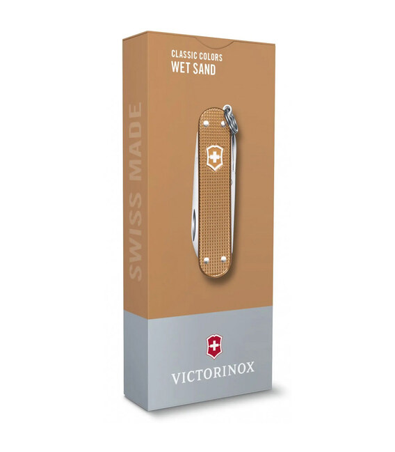 Victorinox CLASSIC SD Alox Colors (Wet Sand - пісочний відтінок) - маленький і легкий складаний ніж 58 мм з 5 функціями і культовими накладками Alox. Модель з яскравої колекції Colors Classic SD 2021 року. Лінійка представлена моделями у форматі невеликого брелока. Популярні однотонні дизайни швейцарського кишенькового ножа з набором корисних щодня функцій.Колекція: Classic SD Alox Colors Номер моделі 0.6221.255G Світло-коричневі рифлені накладки Alox з анодованого алюмінію Всі інструменти і внутрішня частина конструкції з високоякісної неіржавної сталі Довжина - 58 мм Товщина - 9 мм Вага - 17 г 5 функцій. Постачається у подарунковій коробці, створеній спеціально для колекції Colors. Бренд: Victorinox (Вікторінокс) Країна виробництва: Швейцарія30 приголомшливих кольорів для Classic SD Colors, виконані як з пластиковими накладками, так і культовими рифленими накладками з анодованого алюмінію. Ножі з алюмінієвими накладками містять 5 зручних функцій в стильному дизайні, що робить їх функціональними і привабливими.1. маленький клинок 2. ножиці 3. пилочка для нігтів 4. - викрутка плоска 2.5 мм 5. кільце для підвішування до брелока або ключів На ніж Victorinox Classic SD Colors 0.6221.255G, як і на будь-який складаний ніж Вікторінокс, поширюється довічна гарантія на якість матеріалів і заводське виробництво. Швидка доставка - Оригінальні ножі Victorinox - широка географія доставки по всій Україні.
