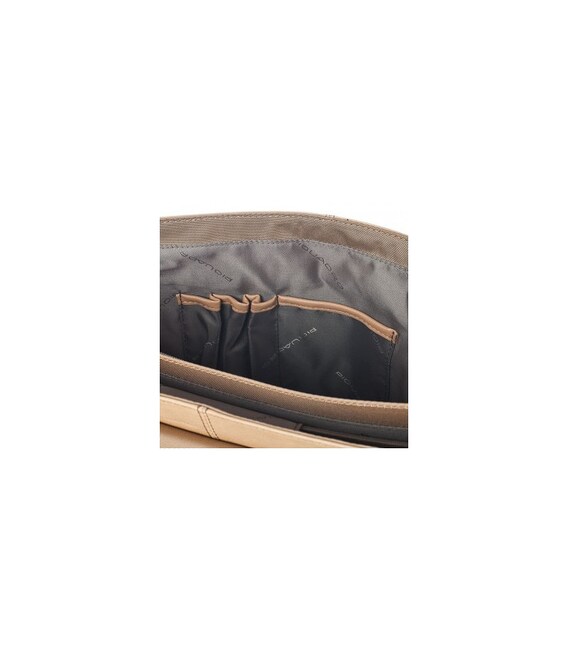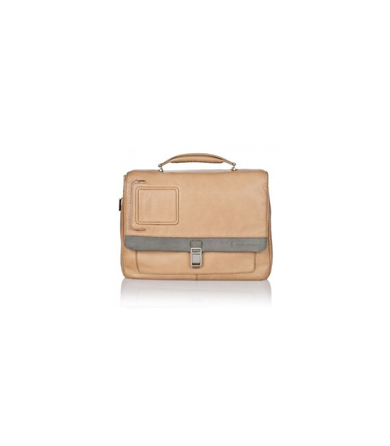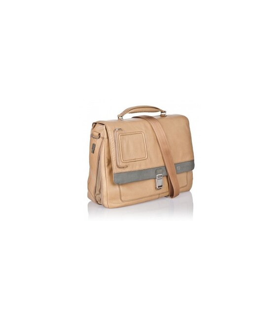 Портфель з плечовим ременем 41х 30.5х 13см; з натуральної шкіри Piquadro; CA1744VI_SAVE VIBE / Sand-Olive1 Відділення для ноутбука 15-ти дюймів з фіксацією. Два основних відділення під клапаном. Кишеня на блискавці, відділення для кредитних карток, ручок, документів, карт пам'яті. Кишеня під клапаном на блискавці. Знімна адресна бірка, знімне кріплення для ключів. Знімний плечовий ремінь. Система кріплення до ручки багажної сумки через задній ремінь. Матеріал: теляча шкіра. Розмір: 41х30,5х13 см. Колір: бежевий і оливковий (темно-зелений)