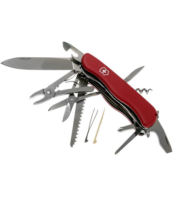 HERCULES від Victorinox - великий кишеньковий ніж 111 мм із 18 функціями, що включають плоскогубці і ножиці. Надміцний дизайн із природженою багатозадачністю. Ідеальний портативний мультиінструмент для роботи з болтами і гайками, кабелями. Лезо і велика відкривачка забезпечені функцією блокування типу Liner-lock (поздовжня сталева пластина). Корисний набір плоских і хрестових викруток і відкривачок. 1. великий клинок із блокуванням Liner-lock 2. пилка по дереву 3. відкривачка 4. - викрутка 5 мм з блокуванням 5. - паз для усунення ізоляції 6. консервний ніж 7. - викрутка 3 мм 8. хрестова викрутка ½ 9. хрестова викрутка 0/1, довга 10. дирокол 11. ножиці 12. штопор 13. плоскогубці 14. – кусачки 15. - інструмент для обтинання дроту 16. пінцет 17. пластикова зубочистка 18. кільце для підвішування Використання високоякісної неіржавної сталі і поліаміду дозволило створити потужний і продуктивний складаний ніж, для якого немає непереборних труднощів. Ріжучі краї протягом довгого періоду зберігають ідеальну заводську заточку для максимальної легкої і точної роботи. Номер за каталогом: 0.8543. Бренд-виробник: Victorinox AG, Швейцарія. Великий розмір (довжина х товщина): 111 х 27 мм. 18 функцій. Висококласна неіржавна сталь. Червоні матові накладки з поліаміда. Офіційна гарантія на якість матеріалів і збірки. Упаковка: срібляста картонна коробочка. Купити складаний ніж Victorinox (Вікторінокс) Hercules 0.8543 на сайті chemodanoff.com.ua - 100% оригінал, сертифікований гарантійний сервіс, вигідна ціна і швидка доставка по Україні. Інтернет-магазин оригінальної брендової продукції для себе і на подарунок.