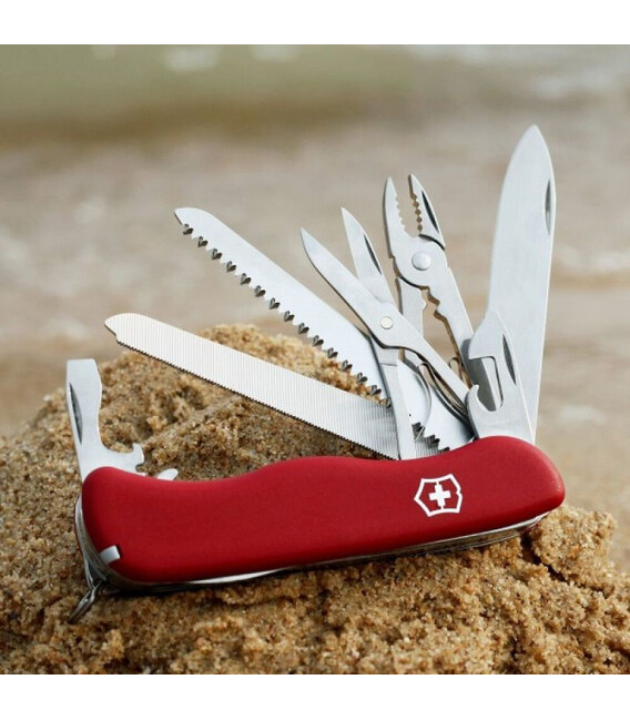Великий швейцарський ніж WORKCHAMP з фіксатором леза Liner Lock / 111мм / 21 функція / червоні накладки з поліаміду / штопор / пилка по дереву / ножиці / плоскогубці / напилок по металу / викрутки Victorinox 0.8564 Швейцарія