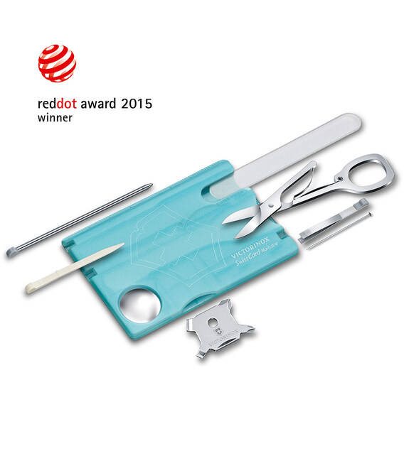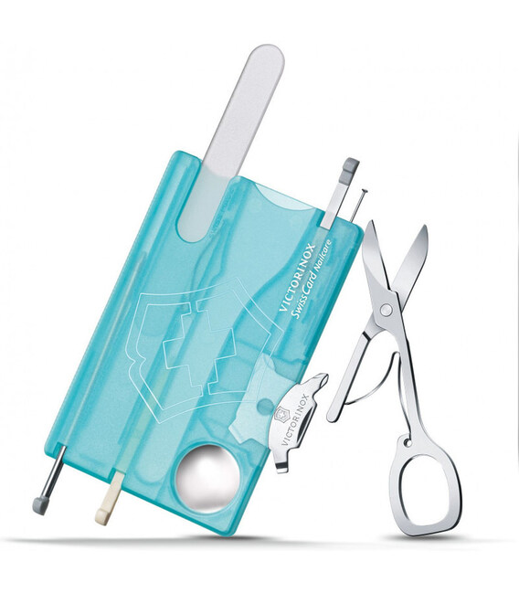 SWISS CARD NAILCARE (блакитний) від Victorinox – швейцарський мультинабір у стильному форматі кредитної картки на 13 функцій, серед яких зручні ножиці та пилочка для нігтів. Популярна Швейцарська картка легко поміщається навіть у гаманці чи будь-якій кишені.Комплектація Swiss Card Nailcare, незважаючи на позиціювання як дорожній набір для догляду за нігтями, подбає про ваш комфорт поза домом, на роботі, у поїздці. Ваш компактний ремкомплект, щоб відремонтувати або обрізати нитки, що стирчать, записати важливу інформацію або заповнити документи - ви готові до всього. Завдяки продуманому, відзначеному нагородами дизайну та неймовірній функціональності ви будете отримувати задоволення щоразу, коли вам знадобиться скористатися будь-яким з інструментів.Інформація про SwissCard Nailcare (0.7240.T21)✔ Кількість функцій: 13.✔ Блакитний напівпрозорий корпус-органайзер з ударостійкого пластика.✔ Інструменти з першокласної неіржавної сталі.✔ Розмір картки (Д х Ш х Т): 82 х 55 х 4 мм✔ Вага набору: 26 г✔ Виготовлено у Швейцарії.✔ Упаковка: подарункова картонна коробочка.1. ножиці2. скляна пилочка для нігтів3. кулькова ручка4. пінцет5. збільшувальне скло6. шпилька7. лінійка см8. лінійка у дюймах9. зубочистка10-13. інструмент Quattro:- плоска викрутка 3 мм- плоска викрутка 5 мм- хрестова викрутка 00-0- хрестова викрутка 1/2