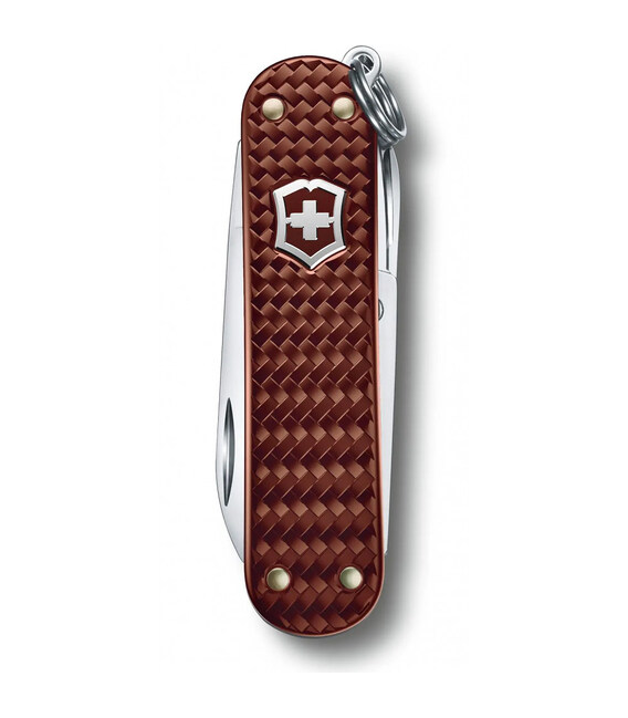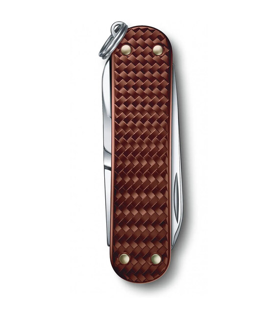 CLASSIC PRECIOUS ALOX Hazel Brown (0.6221.4011G - коричневий) – маленький складаний ніж 58 мм від VICTORINOX. Довговічний та стильний кишеньковий дизайн 2021 року з ефектними фактурними накладками, які нагадують затишний бабусин светр.Стандартно для моделей із алюмінієвими накладками з лінійки Classic містить 5 основних функцій. Корисний і при цьому компактний девайс у форматі брелока, який завжди під рукою.Професійна якість справжніх швейцарських ножів: різальні крайки довго залишаються максимально гострими та не вимагають частого заточування; інструменти не люфлять і зручні у використанні.Функції:1. невеликий ножик2. ножички3. пилочка +4. – плоска викрутка 2,5 мм5. кільце для кріплення Особливості:• Довжина: 58 мм• 5 функцій• Неймовірно легка вага: 17 г• Колір – Hazel Brown (коричневий).• Високоякісна неіржавна сталь для інструментів.• Алюмінієві накладки із тканим візерунком.• Бренд та країна: Victorinox AG, Швейцарія• Ексклюзивна подарункова коробка із сертифікатом справжності.Купити складаний ніж Вікторінокс CLASSIC SD Precious Alox в інтернет-магазині chemodanoff.com.ua. 100% Оригінал.Колекція Classic Precious Alox представлена в 5-ти кольорах: червоний, коричневий, рожевий, золотистий та сірий.