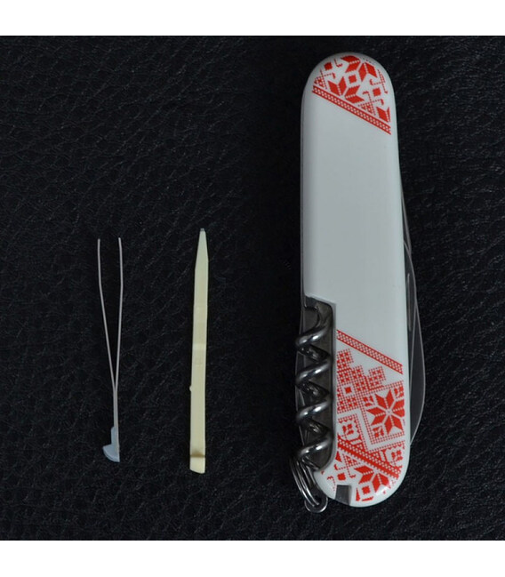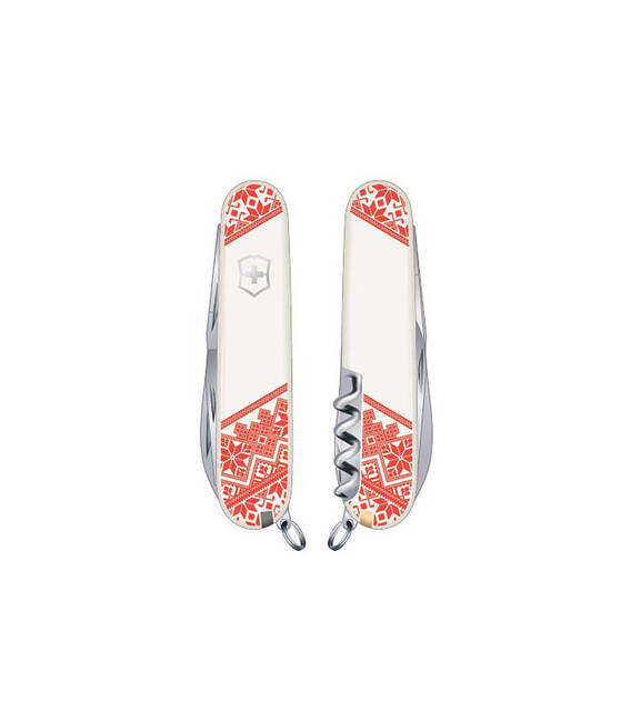 Швейцарський армійський ніж SPARTAN UKRAINE 91мм / 12 функцій / штопор / білі накладки з Орнаментом Victorinox