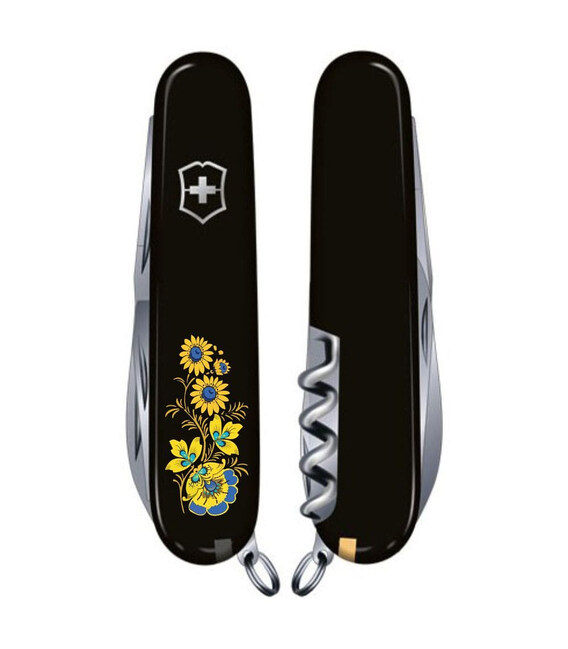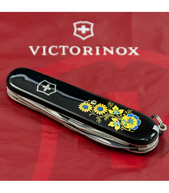Середній кишеньковий ніж Victorinox SPARTAN UKRAINE 91мм / 12 функцій / чорні накладки / штопор / Квіти