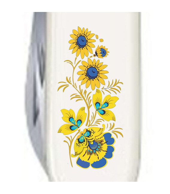 Середній кишеньковий ніж Victorinox SPARTAN UKRAINE 91мм / 12 функцій / білі накладки / штопор / Квіти