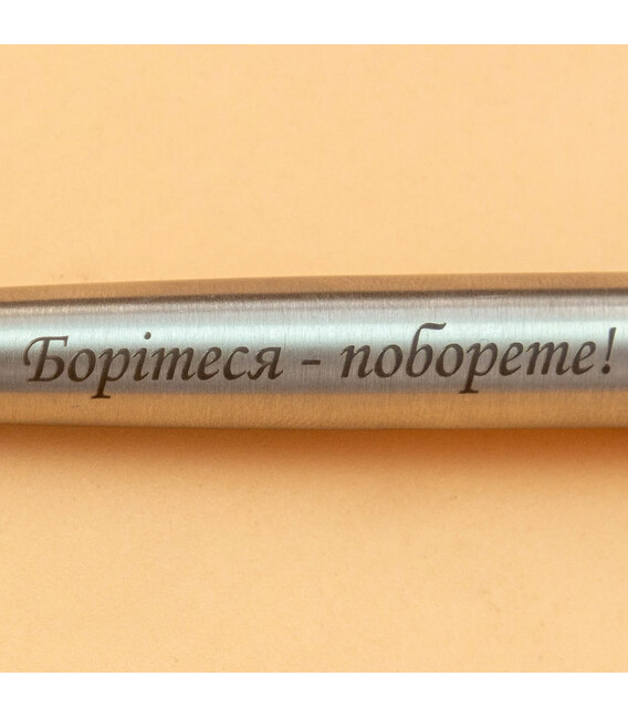 Оригінальна кулькова ручка Parker JOTTER Stainless Steel CT BP з гравіюванням «Борітеся - поборете!». Цитата із поеми Тараса Шевченка «Кавказ», яка підтримує та надихає вже не перше покоління українців: «Борітеся - поборете, вам Бог помагає! За вас правда, за вас слава. І воля святая!» Сталева ручка зі сталевим характером - знаковий подарунок для кожного українця.Ручка є частиною ексклюзивної колекції Jotter Ukraine, присвяченої Україні, в оздобленні Stainless Steel CT. Гладкий сталевий корпус легко та комфортно відчувається у руці. Поліровану поверхню вдало підкреслено блискучим хромованим оздобленням. Це ідеальна ручка для активного використання та щоденного письма. Для кулькових ручок Parker підійдуть змінні стрижні Quink Flow (кулькові) та GEL (гелеві). Професійна якість письма, плавні, м'які та рівномірно насичені лінії.✔ Ексклюзивний випуск Jotter Ukraine.✔ Повністю металевий дизайн: полірована неіржавна сталь.✔ Блискучий затискач-стріла з хромуванням.✔ Лазерне гравіювання на корпусі «Борітеся - поборете!»✔ Довжина ручки: 128 мм.✔ Звичний тип активації стрижня - кнопка.✔ У ручці кульковий стрижень QuinkFlow: середня лінія письма (діаметр кульки = 1 мм).✔ Оригінальна картонна коробка Parker.✔ Ручку виготовлено у Франції (назву країни вигравірувано на ковпачку).Оригінальні ручки Parker в онлайн-магазині ексклюзивних товарів А ttribute.ua.Офіційна 2-річна гарантія та професійне гарантійне обслуговування.Швидка та зручна доставка.
