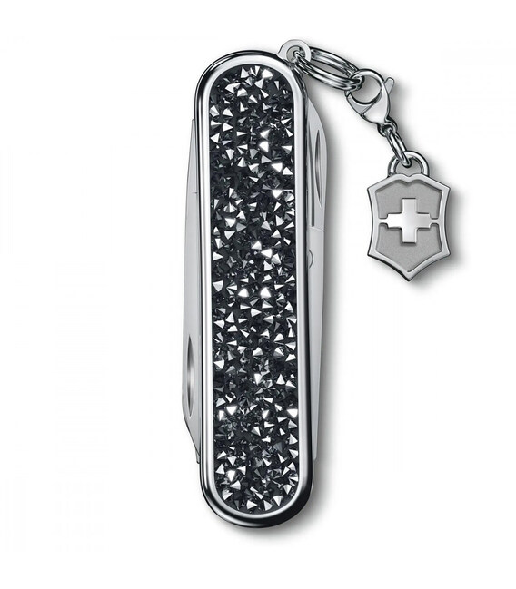 Victorinox CLASSIC SD Brilliant Crystal - складаний ніж-брелок завдовжки 58 мм на 5 функцій. Справжній витвір мистецтва з блискучими кристальними накладками.Розкішний вигляд та бездоганна функціональність. Цей ніж стане справжнім діамантом у вашій колекції швейцарських складаних ножів. Маленький та мультизадачний, він чудовий додаток до вашого щоденного арсеналу корисних речей. А досконалий дизайн та шарм роблять цей інструмент неперевершеним за елегантністю. Це блискуче переосмислення легенди.Інформація про ніж CLASSIC SD Brilliant Crystal:✔ Ексклюзивні чорні накладки з чорних кристалів найвищої якості..✔ Ніж швейцарського виробництва з першокласної неіржавної сталі.✔ 5 функцій.✔ Розмір ножа по руків’ю (довжина х ширина х товщина), мм: 58 х 18 х 7✔ Вага: 24 г✔ Серійний номер моделі: 0.6221.35✔ Спеціальна подарункова коробка з сертифікатом якості.✔ Офіційна довічна гарантія.Функції:1. невеликий ніж 40 мм2. ножиці з пружинним механізмом3. пилочка для нігтів4. - маленька плоска викрутка 2.5 мм5. сталеве кільце зі знімним брелоком-логотипом Виготовлено у Швейцарії.Справжня продукція, професійний гарантійний сервіс та швидка доставка.