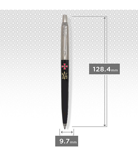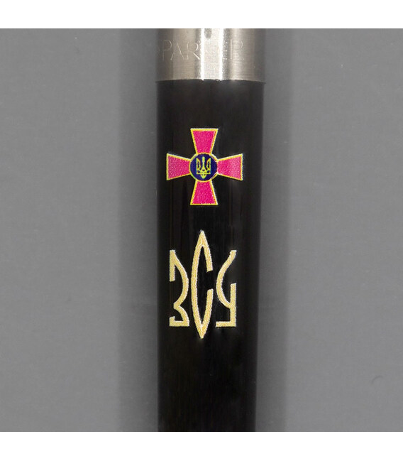 Чорна кулькова ручка Parker JOTTER ARMY Originals Black CT з кольоровим друком емблеми Збройних сил України та абревіатурою ЗСУ, стилізованою під Тризуб. Модель представлена в колекції, присвяченій доблесній Українській армії. Чудовий презент усім, хто самовіддано захищає наше майбутнє.Корпус виготовлено в поєднанні міцного пластику та металевого ковпачка зі сталі. Якісно виконаний друк на корпусі стійкий до стирання і радуватиме насиченістю кольору багато років. Блиску та динамічності надають також фірмові хромовані деталі: затискач-стріла Parker та сталевий наконечник. Останній надає додаткової довговічності конструкції та естетичної привабливості. Кулькові ручки Parker використовують стрижні QuinkFlow, також сумісні з гелевими стрижнями Parker GEL.✔ Ексклюзивний випуск Jotter Army.✔ Кольоровий цифровий УФ-друк з покриттям глянцевим лаком - Емблема ЗСУ + Тризуб-абревіатура ЗСУ кольору бронзи.✔ Чорний пластиковий корпус зі сталевим полірованим ковпачком.✔ Блискучий затискач-стріла з хромуванням.✔ Довжина ручки: 128 мм.✔ Класичний механізм із м'яким натисканням кнопки.✔ У ручці стрижень QuinkFlow: середня товщина письма (діаметр кульки=1 мм).✔ Оригінальна подарункова коробка Parker.✔ Ручку виготовлено у Франції (назву країни вигравірувано на ковпачку).
