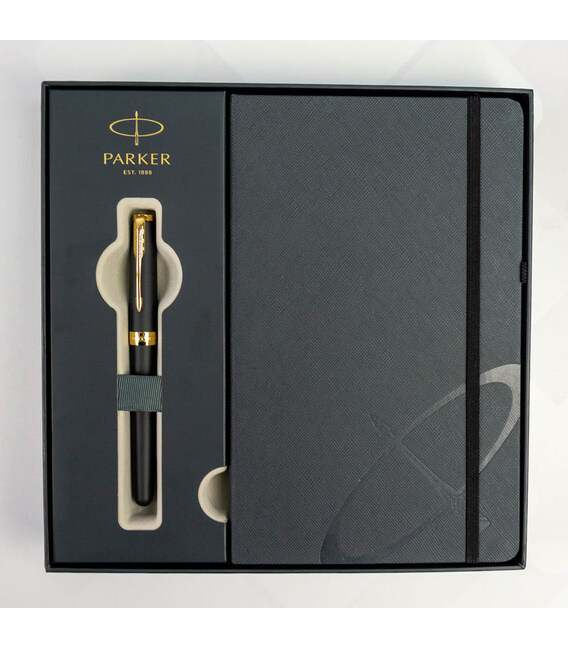 Набір Parker SONNET Matte Black Lacquer GT FP F (перова ручка + блокнот Parker)