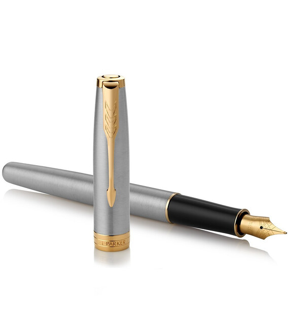 Набір із перовою ручкою Parker SONNET Stainless Steel GT FP F та блокнотом у подарунковій коробці. Вишуканий сталевий дизайн із позолоченим пером. Вишуканий вигляд підкреслено високопробним золотим оздобленням. Елегантна та ергономічна форма зі зручною зоною тримання із чорного глянцевого пластику та класичним знімним ковпачком. Фірмовий кліп у формі стріли та вигравірувана назва бренду завершують бездоганний стиль ручки.✔ Перова ручка Parker SONNET Stainless Steel GT FP F Корпус та ковпачок - неіржавна сталь.Глянцева деталізація - позолота 23 К.Якісне перо із неіржавної сталі з позолотою.Розмір пера - F (тонка лінія письма).У комплектації картридж та конвертер.Ручка-перо має картриджно-конвертерну систему, тому працює як з картриджами для перових ручок, так і з конвертером та чорнилом (чорнило продається окремо).✔ Блокнот Parker Розміри: 134 х 210 мм.Закривається на резинку.Тверда палітурка: сіра з логотипом Parker.Розмітка в лінійку без полів.Титульний аркуш із місцем для підпису.Набір у подарунковій коробці Parker із золотим тисненням.Розміри коробки: 225 х 225 х 43 мм.