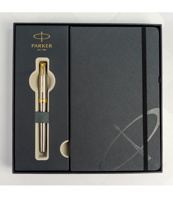 Набір Parker SONNET Stainless Steel GT FP F (перова ручка + блокнот Parker)